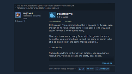 С момента выхода Тетриса в 1984 году прошло уже 30 лет, а игру до сих пор помнят и любят миллионы людей по всему миру. 10 декабря компания Ubisoft выпустила в сети Steam игру Tetris Ultimate, которой пользователи остались глубоко недовольны, передает gamebomb.ru.